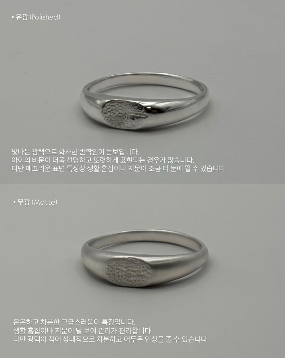 반려 친구들마다 가지고 있는 고유의 문양을 고스란히 반지에 녹여낼 수 있도록 최대한 키트로 보내주신 비문 모양 그대로 제작해드리고 있어요.