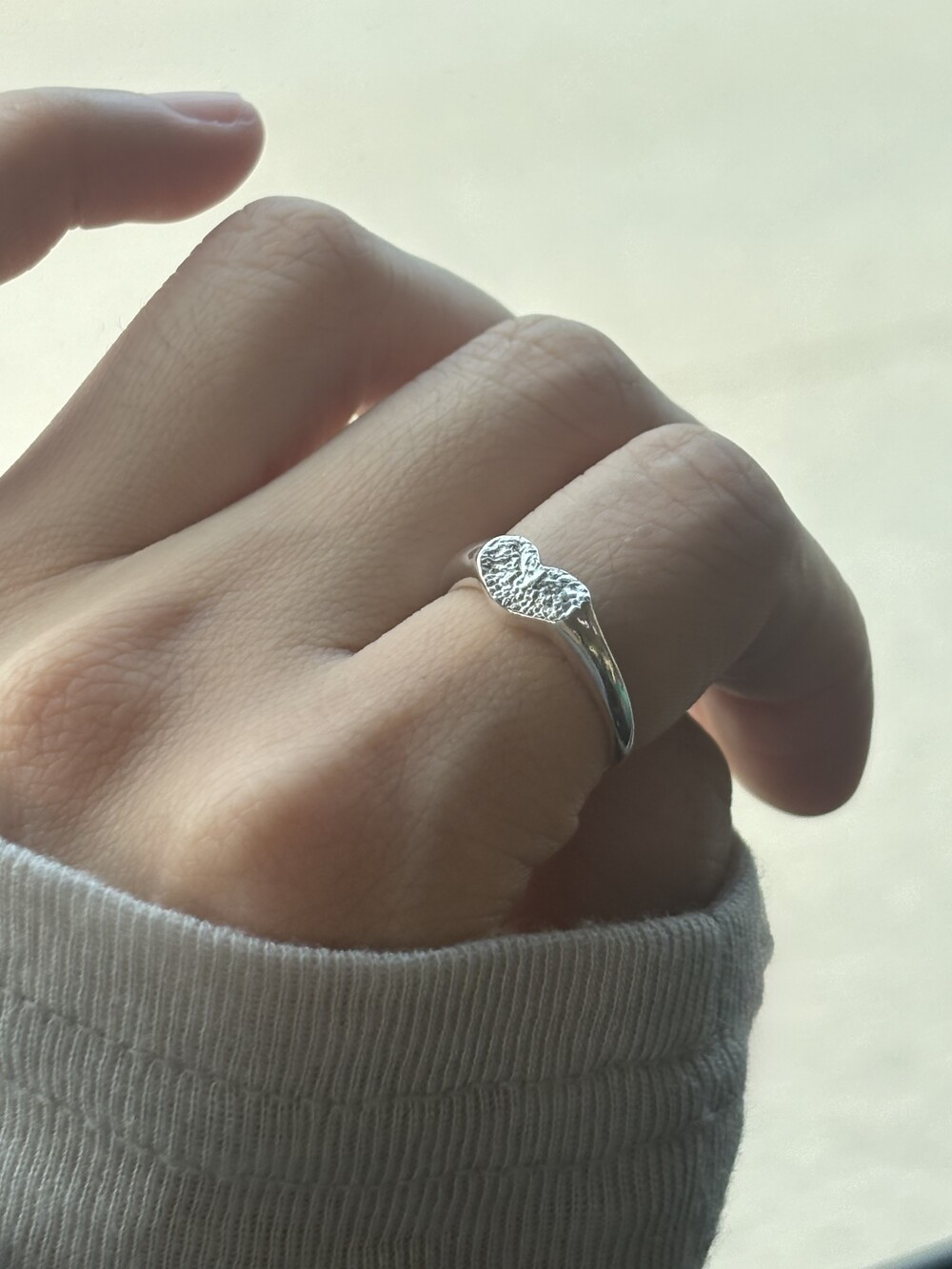 하트 모양 속에 소중한 흔적을 꾹 담아, 사랑을 연결해주는 비문 반지입니다.
